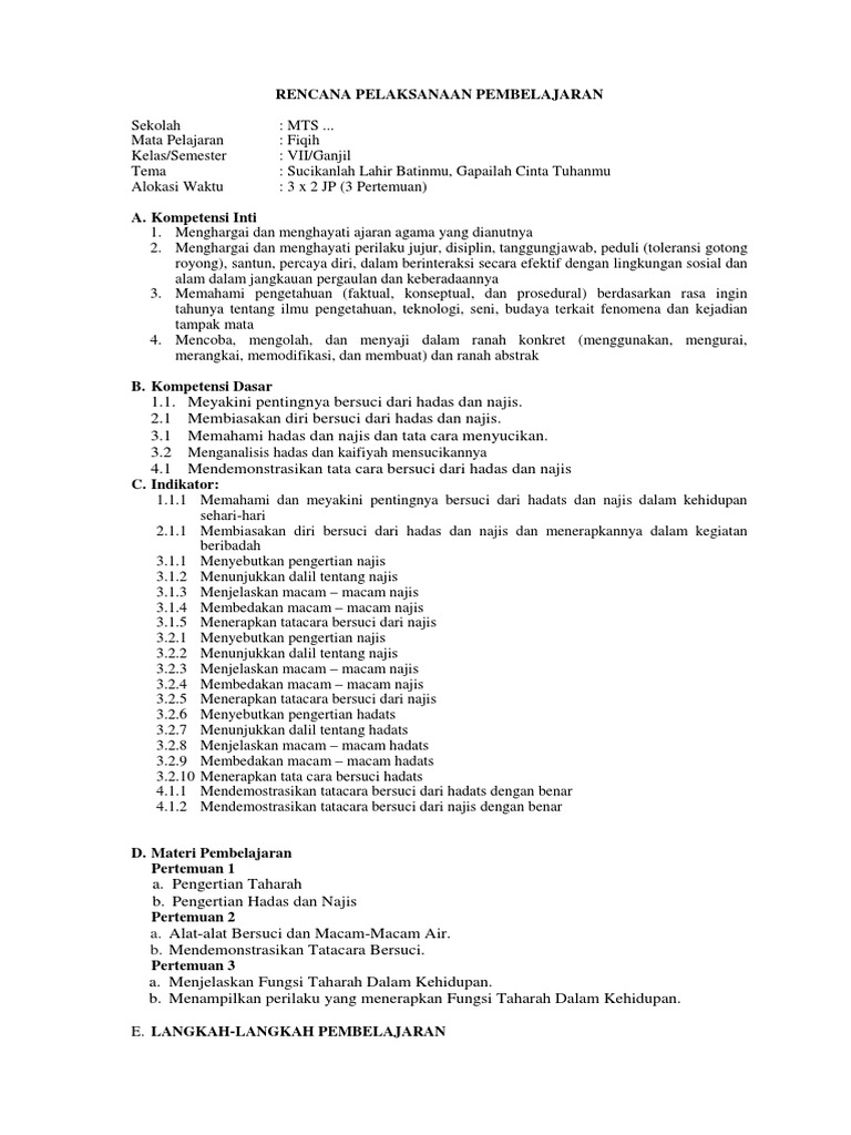 Rpp 1 lembar fikih kelas 7 kurikulum 2013 lengkap.